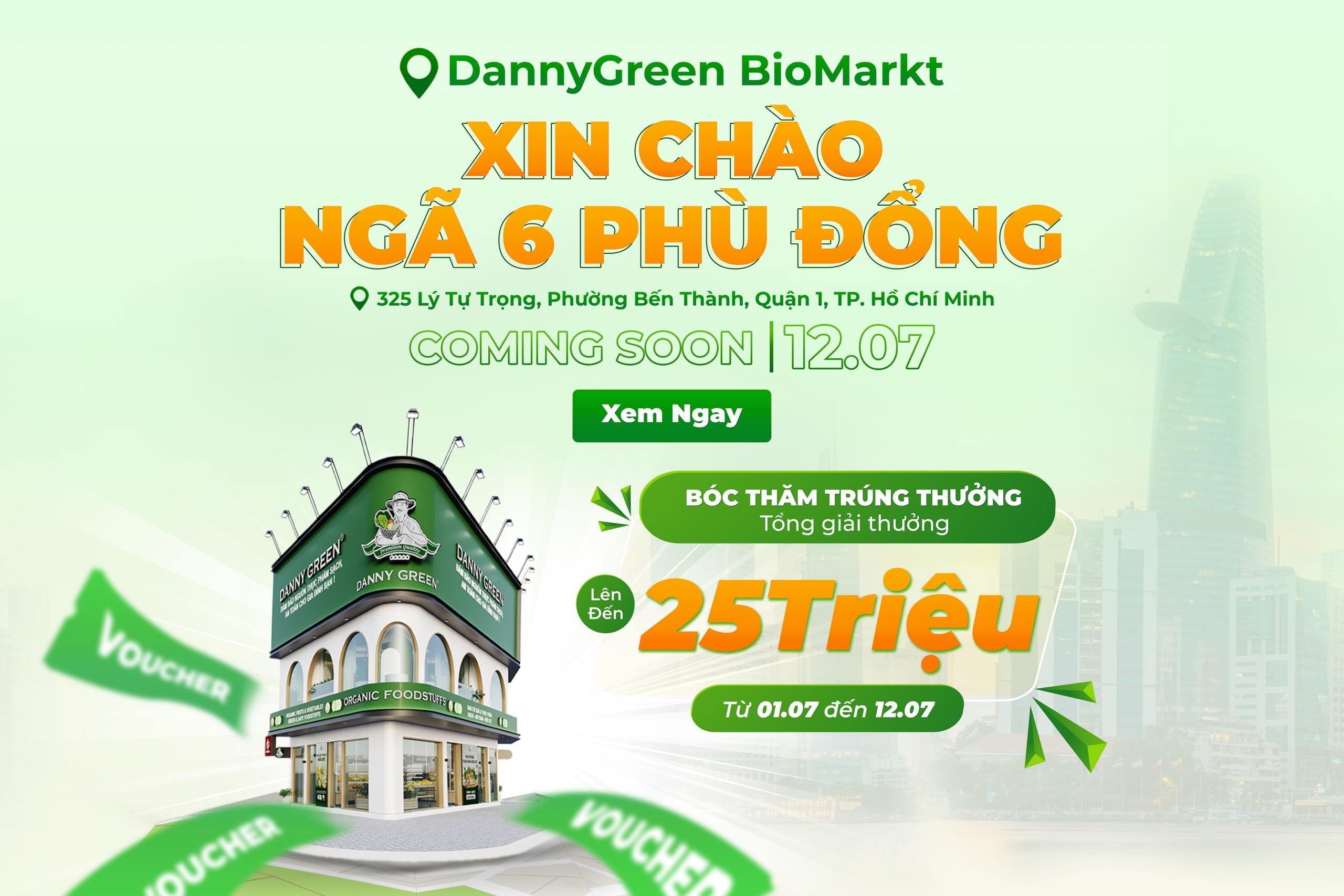 On July 12, DannyGreen is pleased to welcome the DannyGreen BioMarkt store at 325 Ly Tu Trong, Ben Thanh Ward, District 1 with a series of attractive programs before, during and after the opening.